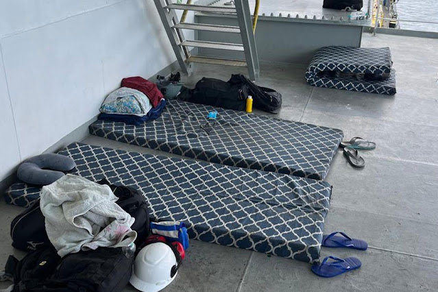 trabalhadores foram retirados do navio e hospedados em terra, onde aguardaram o
